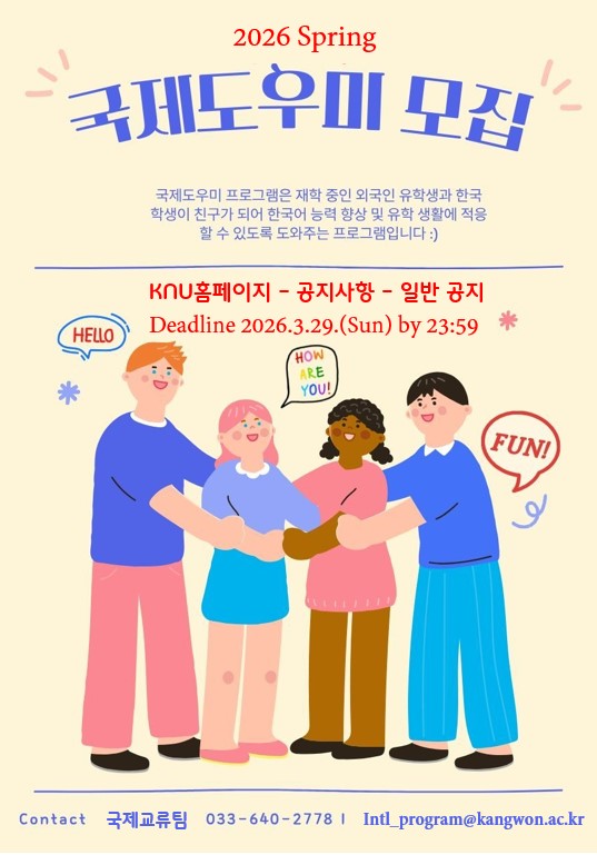 (강원대 강릉,원주) 2026학년도 1학기 국제도우미 선발 공고문.hwp