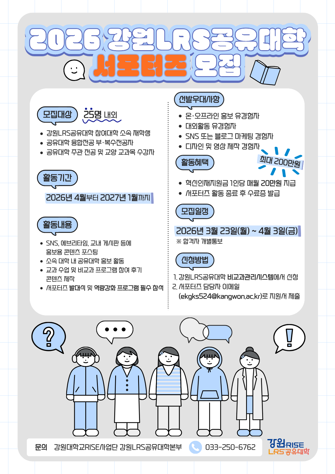 [강원대학교RISE사업단 강원LRS공유대학본부] 2026 강원LRS공유대학 서포터즈 모집 안내