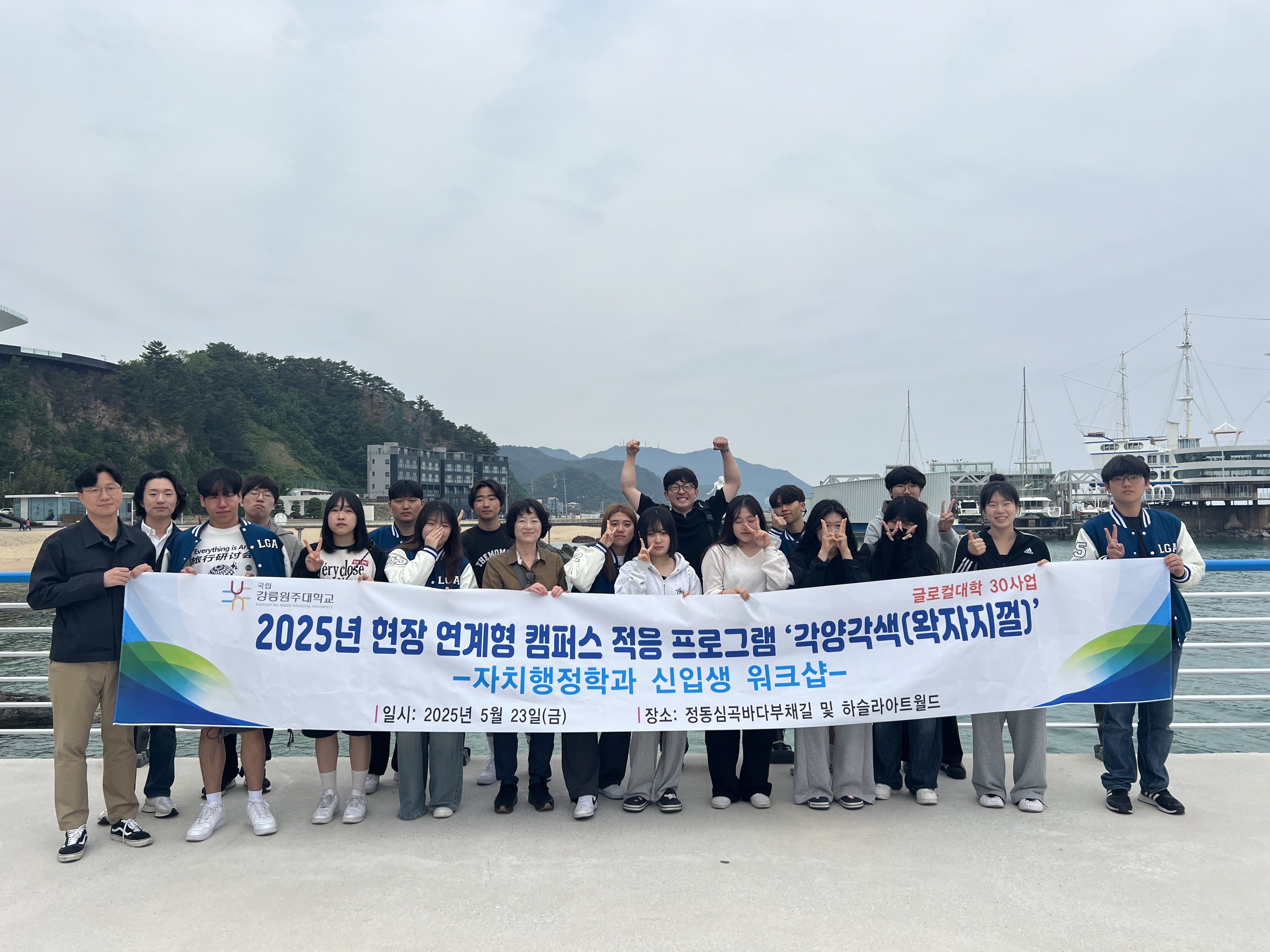 2025년 5월 23일 자치행정학과 신입생 워크숍 개최 및 정동심곡바다부채길, 하슬라아트월드를 방문하였음